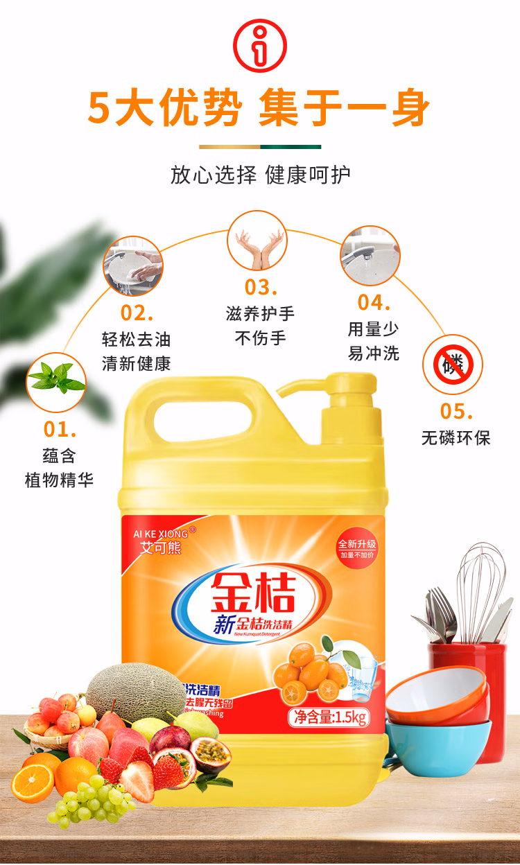洗洁精家用厨房餐具洗涤剂去油污去油渍洗碗液 洗洁精1.5kg1瓶(特价装)
