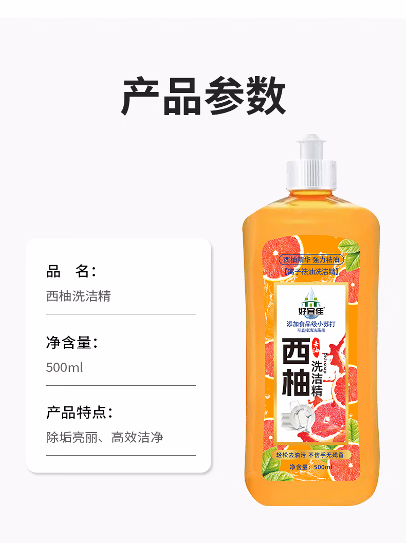 西柚洗洁精食品级去油去污不伤手果蔬餐具净 500ml* 1瓶