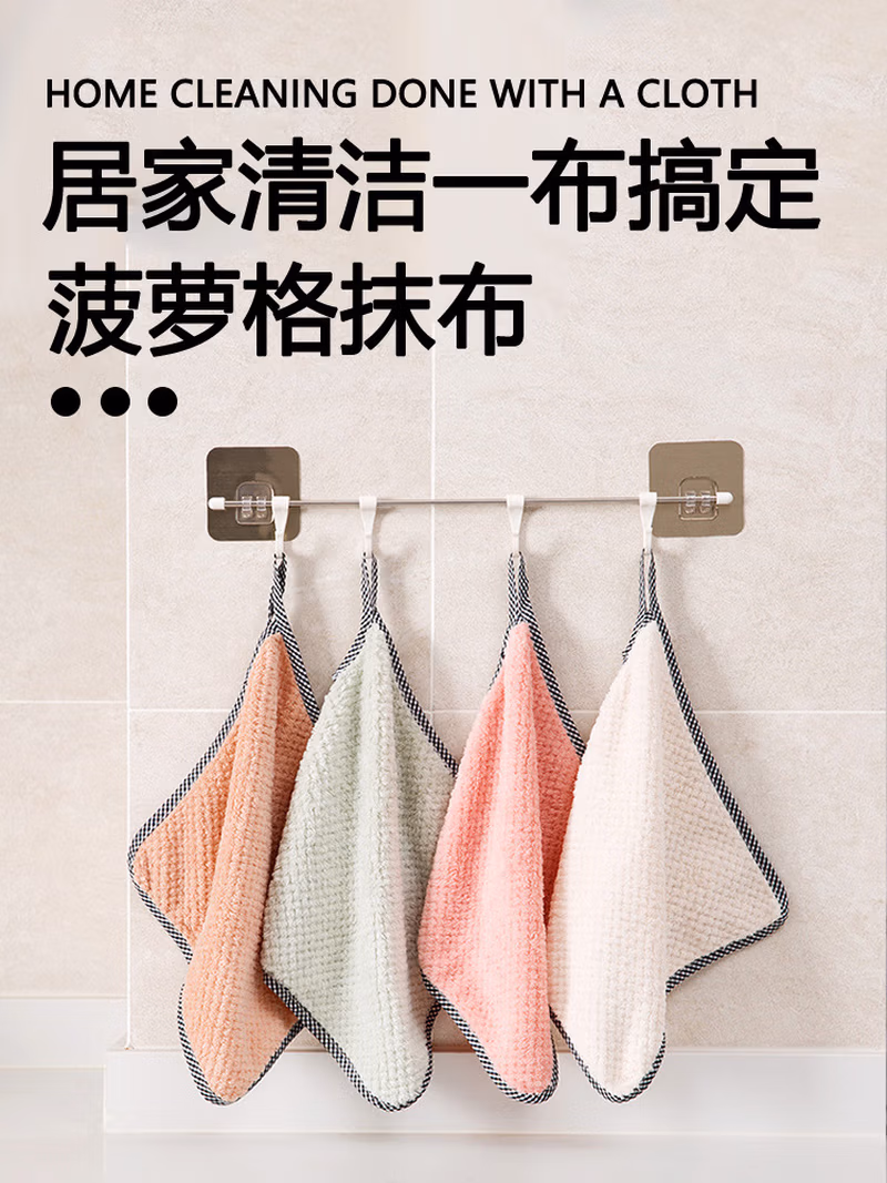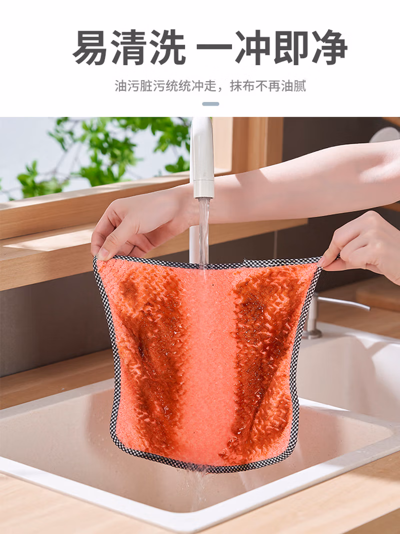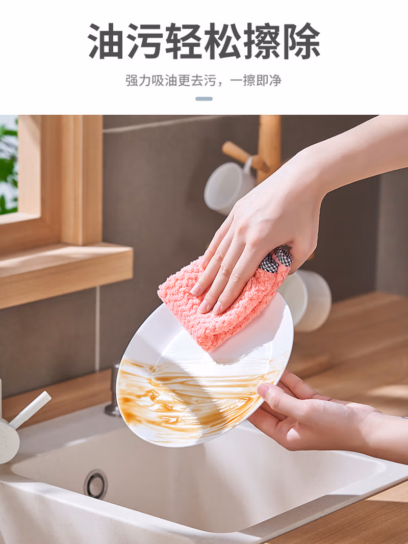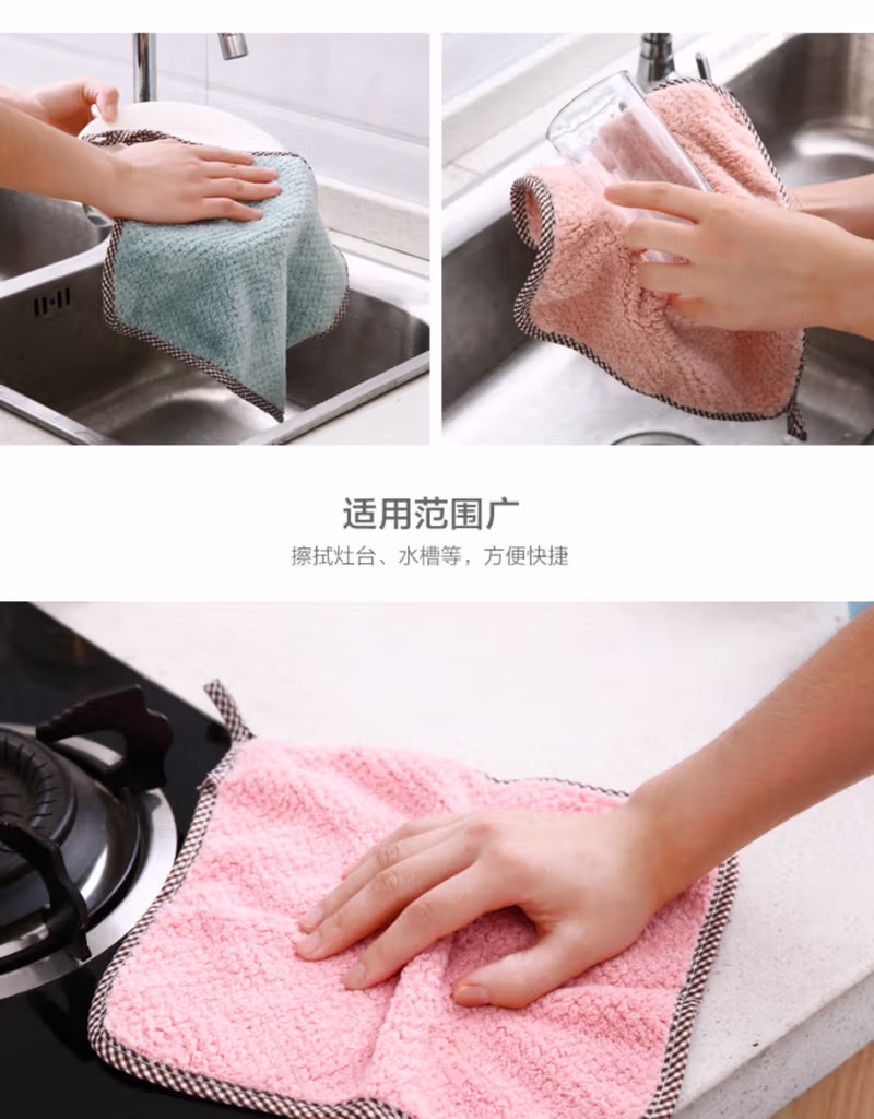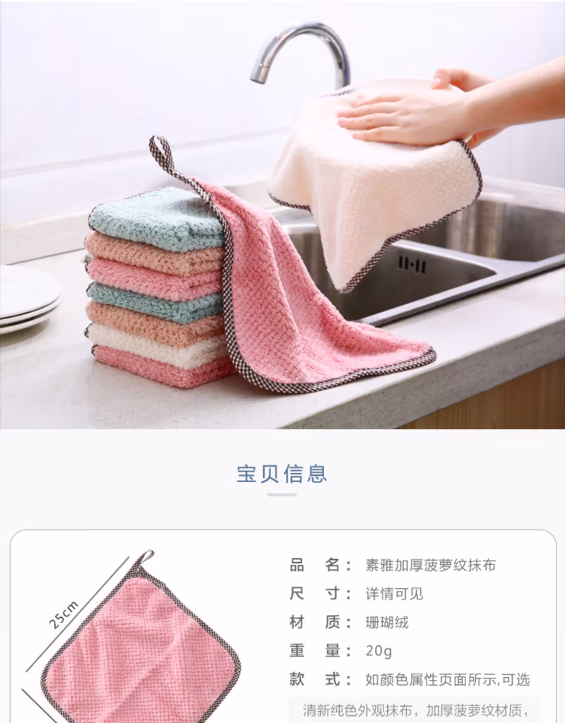 厨房抹布吸水去渍厨房家用洗碗巾洗碗布家务清洁可挂式擦手 3条25*25随机颜色