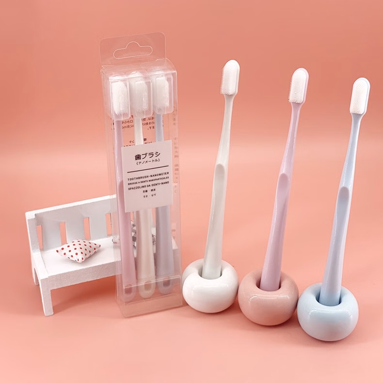 伊甸园马卡龙小头纳米牙刷三支装硅胶中硬毛牙刷成人家用家庭装 日式纳米牙刷1盒 3支