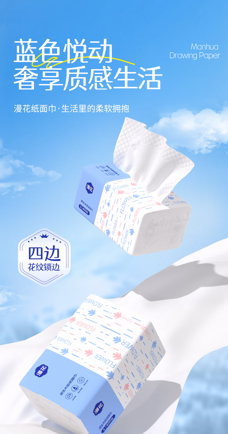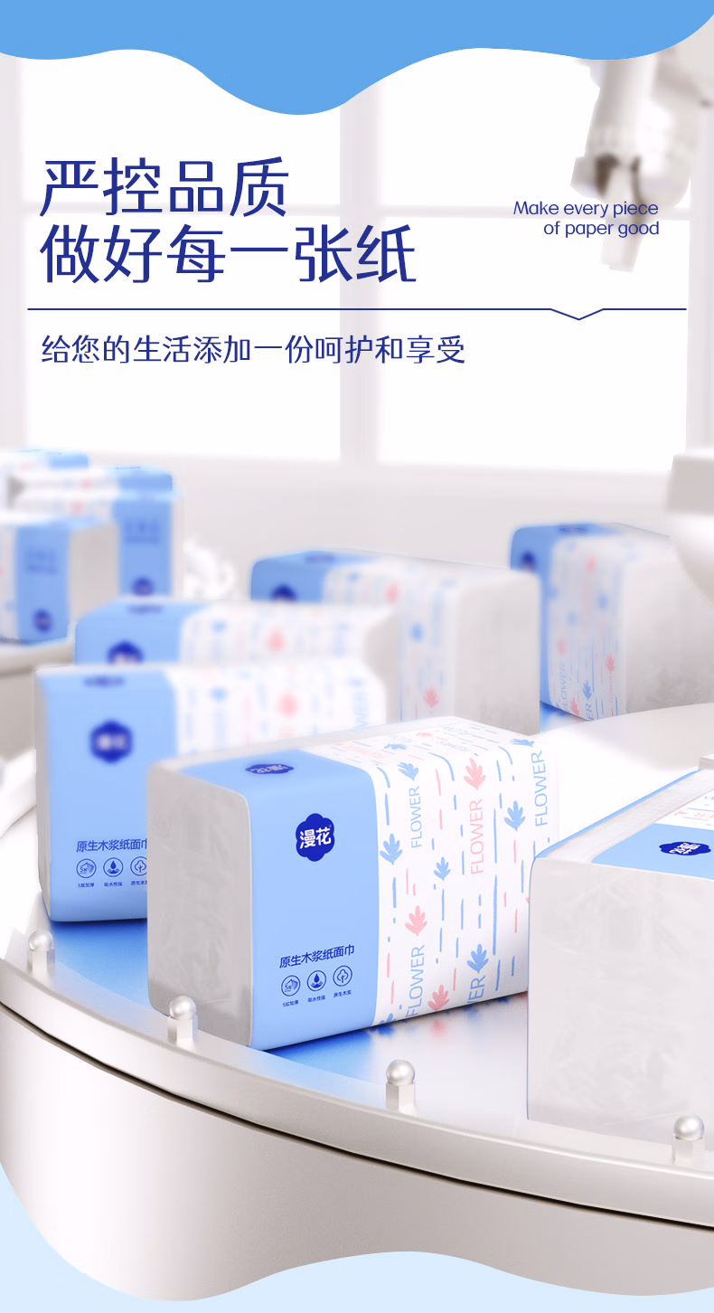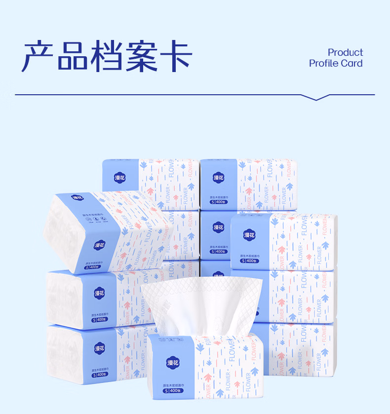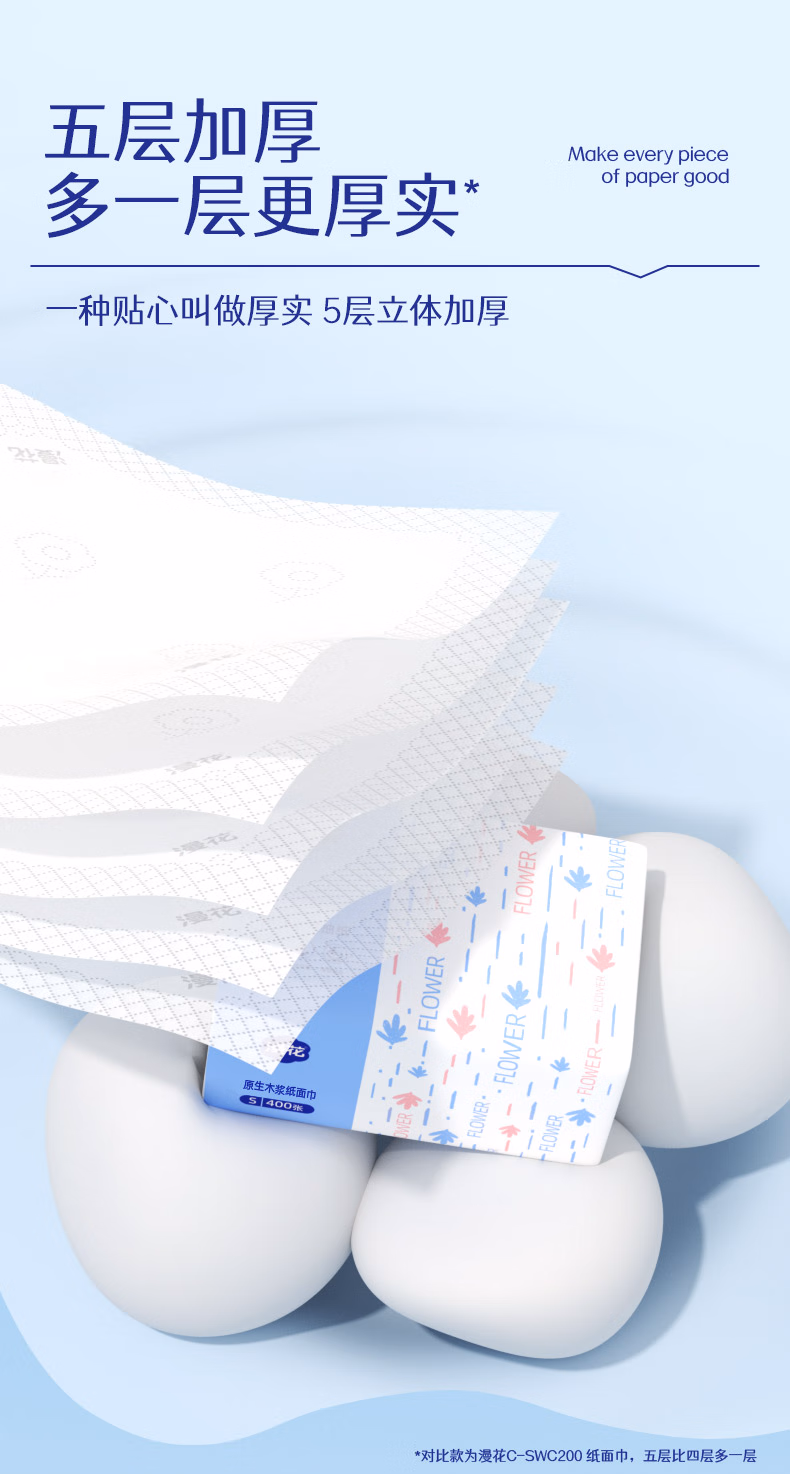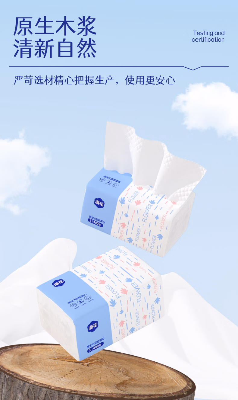 漫花400张5层家用纸巾抽纸整箱实惠装餐巾纸卫生纸家庭装擦手 5层 400张*10包