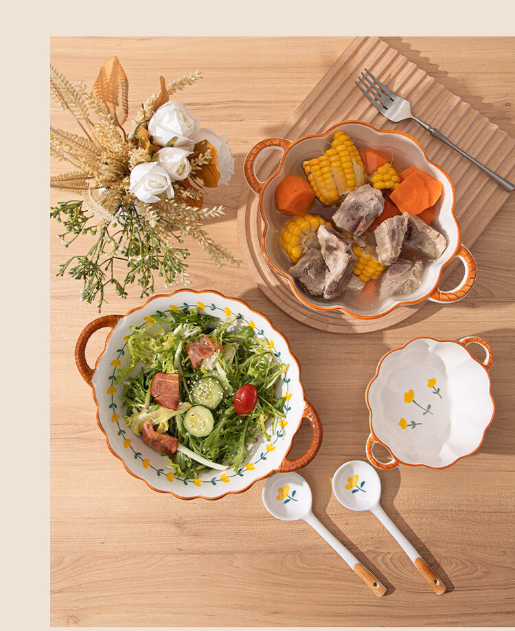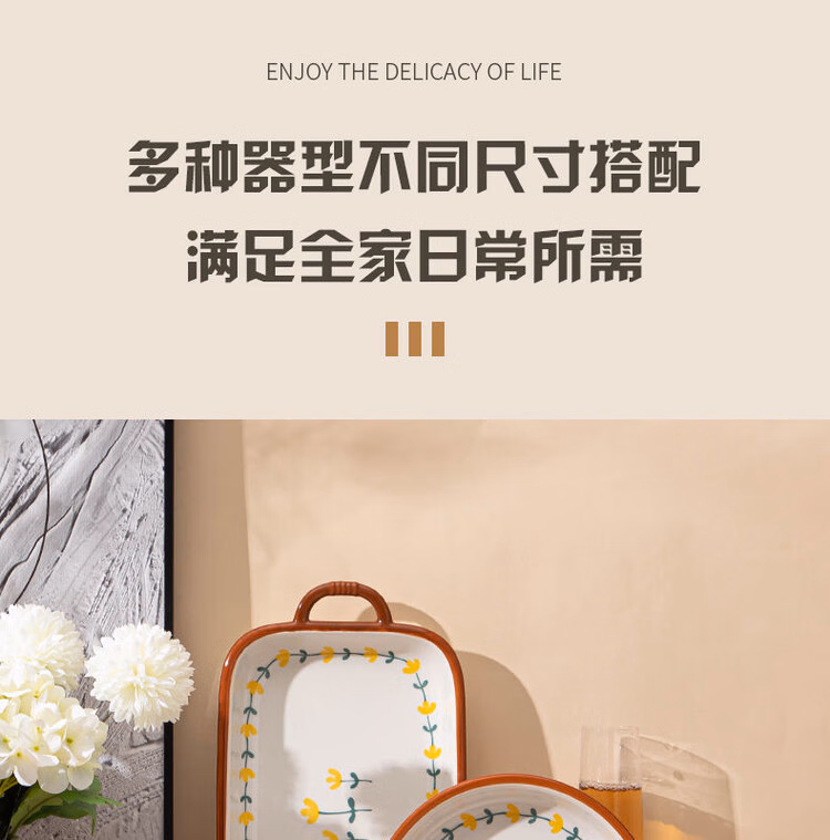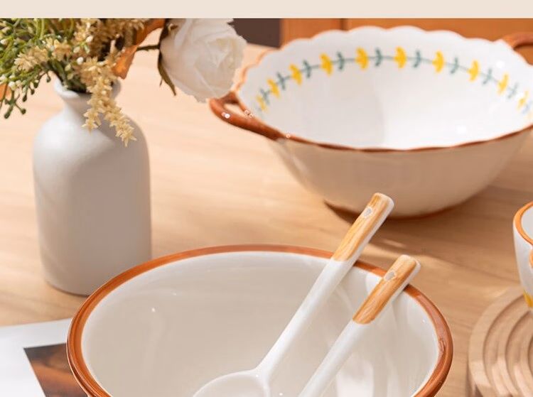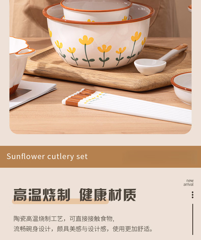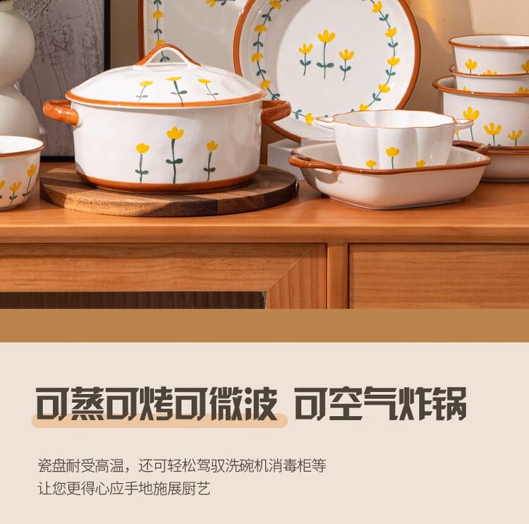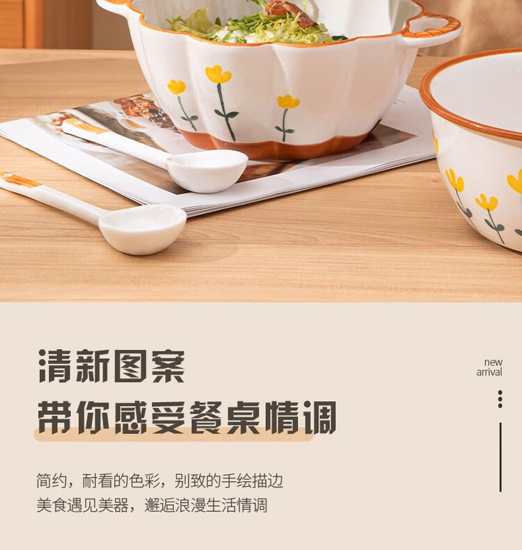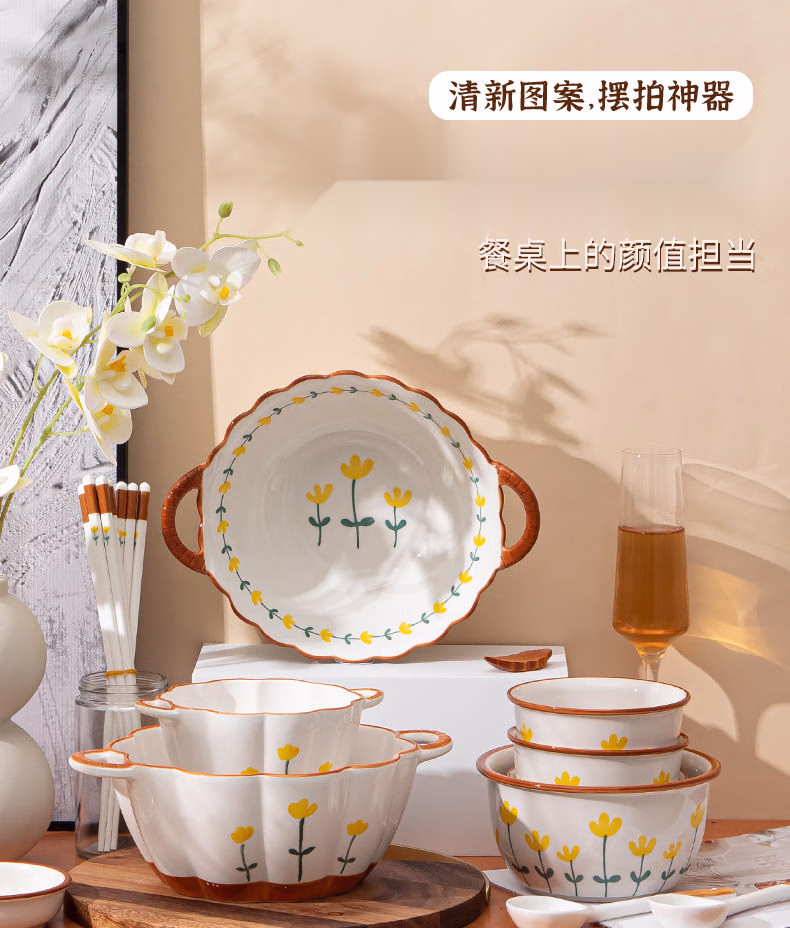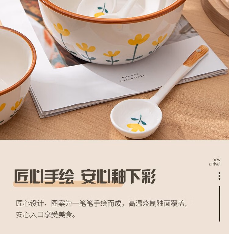 花沐禧餐具高颜值一整套碗盘套装家用碗碟情侣餐具套装2人盘子陶瓷碗具 山菊花+6英寸长勺子【1支】