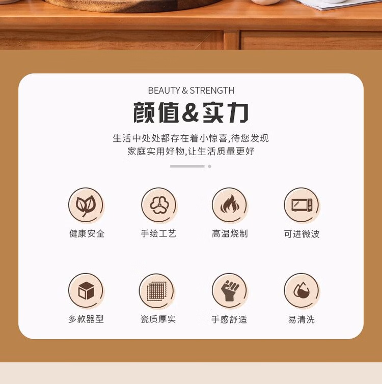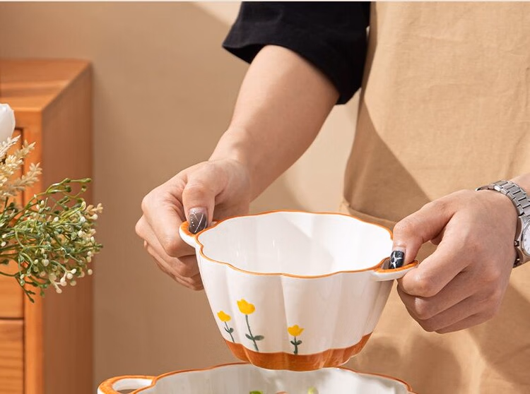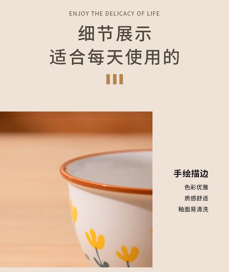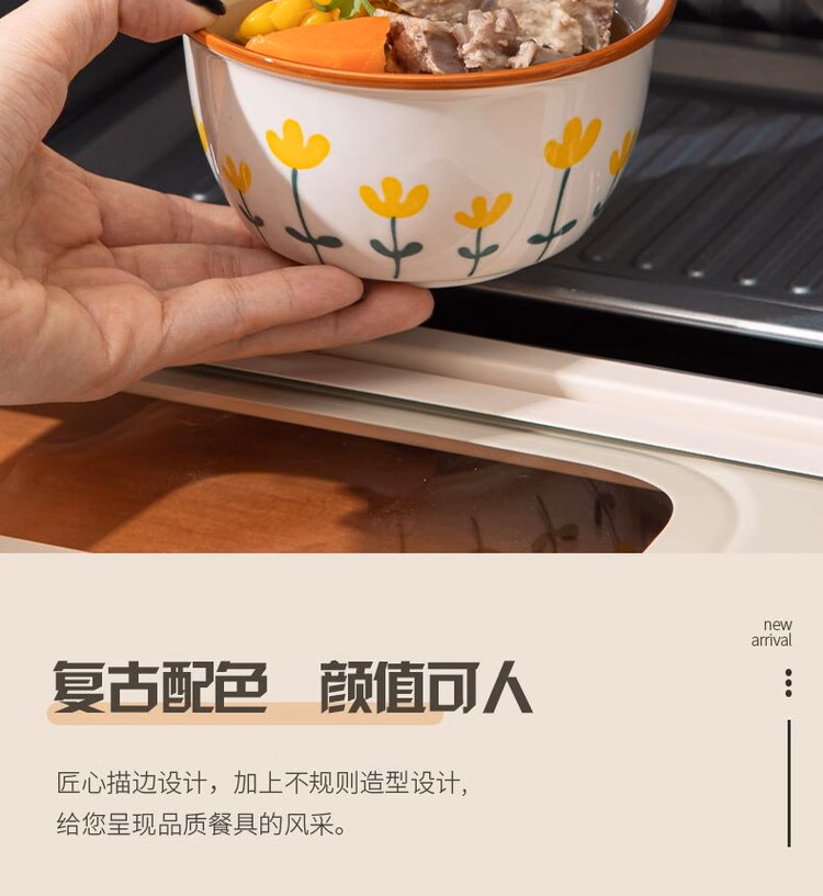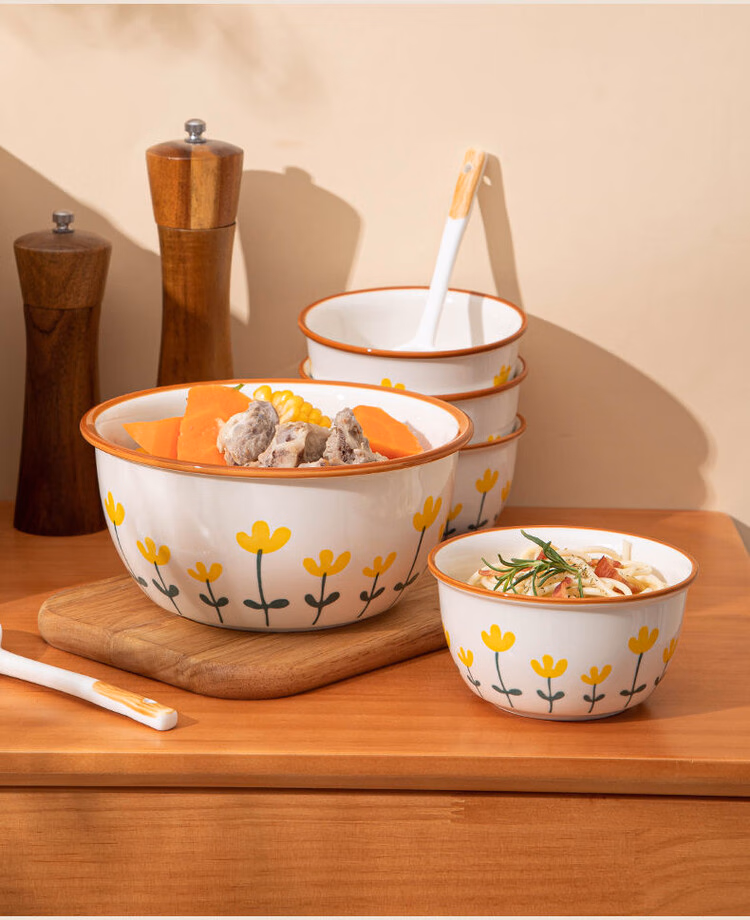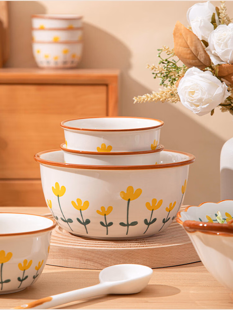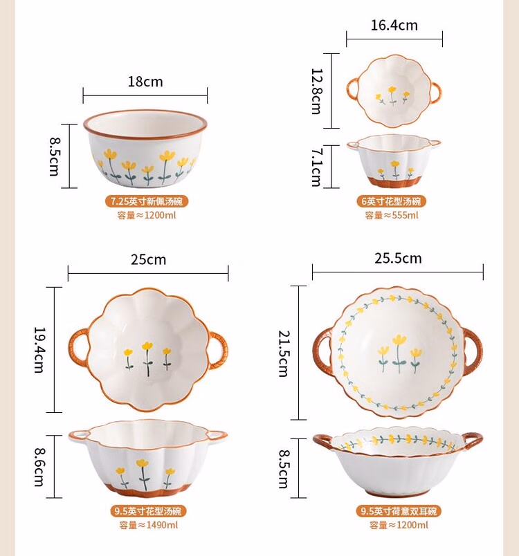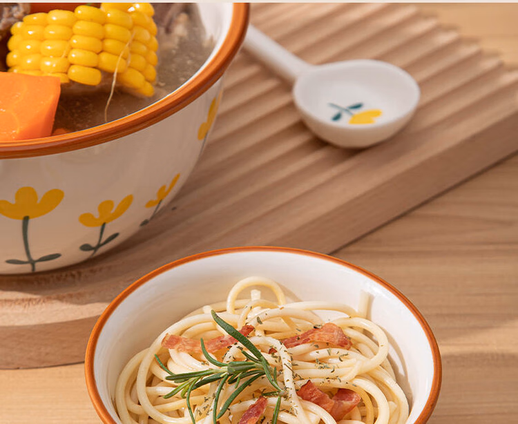 花沐禧餐具高颜值一整套碗盘套装家用碗碟情侣餐具套装2人盘子陶瓷碗具 山菊花+6英寸长勺子【1支】