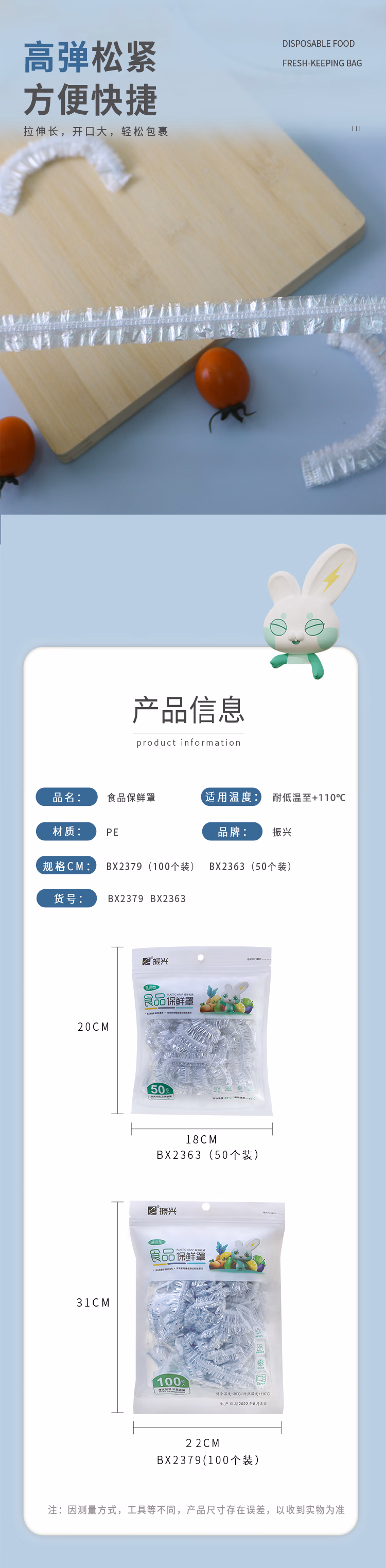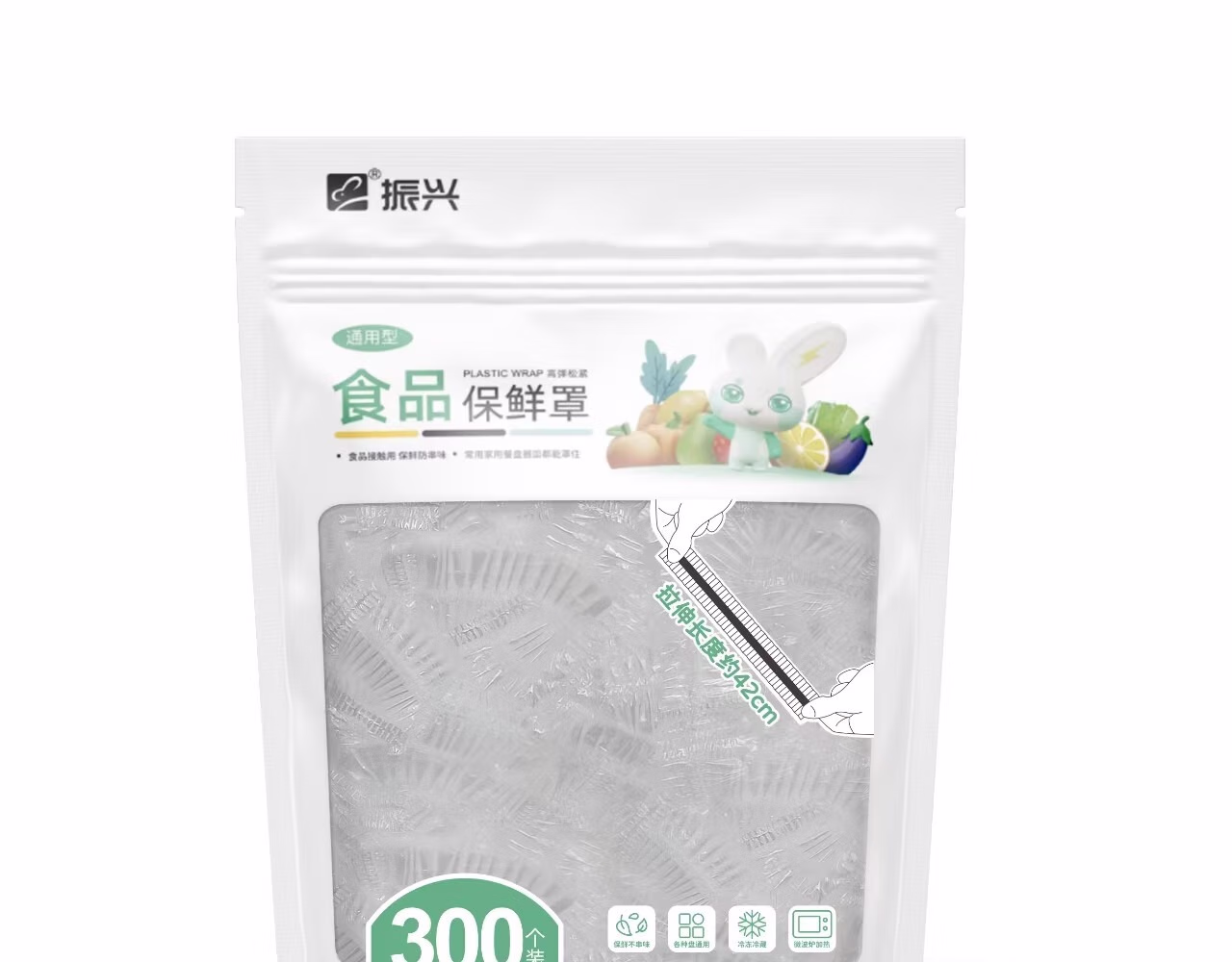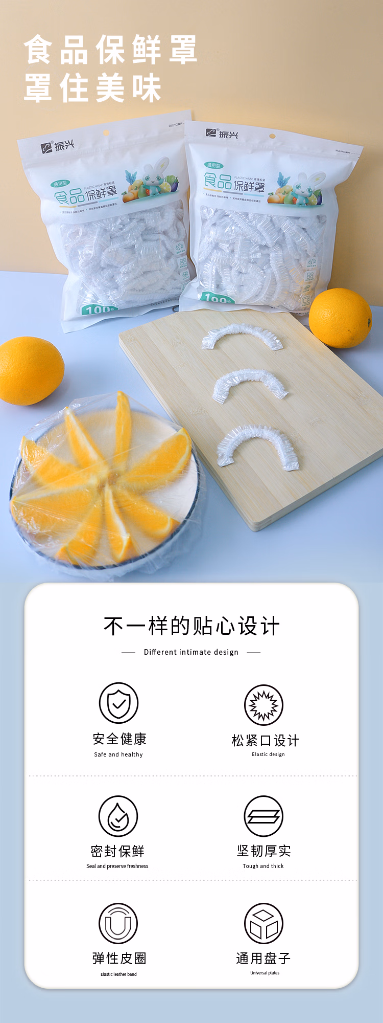 振兴保鲜膜套罩食品级PE家用保鲜膜加厚一次性保鲜袋防尘防虫剩饭碗罩 保鲜膜罩300个